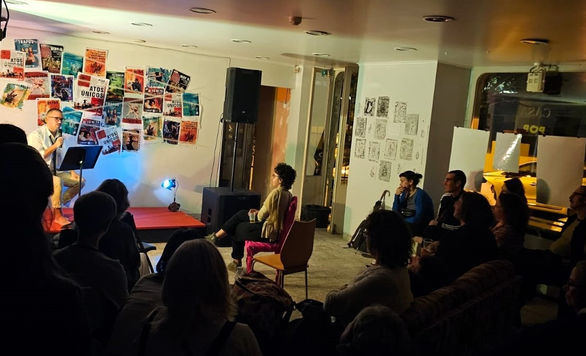 Removing the Body from the Feed is a 10–12 minute poetry slam / performative installation by António Baía Reis that operates as a live counter-feed: a spoken intervention designed to interrupt algorithmic attention and return aesthetic experience to the body, breath, and shared space. Developed from Reis’s ongoing writing practice, particularly his recurring museum visits (notably to the Thyssen in Madrid, where Caravaggio’s Saint Catherine becomes a recurring “threshold” of attention), the piece argues that when aesthetic experience is truly lived, it becomes dense identity-matter: something that re-grounds the self and reclaims autonomy from technological overstimulation.